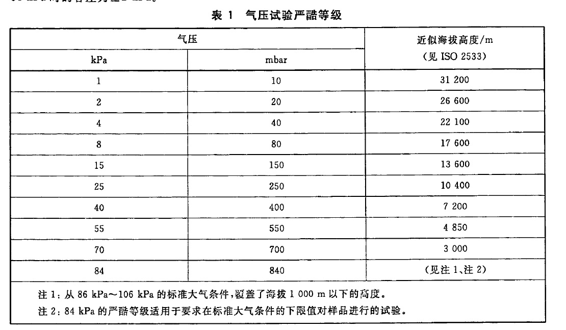上圖是GB/T2423.21-2008中規(guī)定的氣壓試驗(yàn)等級(jí)。地球大氣受重力作用,離地面越高,空氣越稀薄,氣壓也就越低。在標(biāo)準(zhǔn)大氣條件下,海平面氣壓約為 101.3kPa 。隨著海拔上升,氣壓呈非線性下降趨勢(shì)。這是因?yàn)榇髿獠⒎蔷鶆蚍植?,越往高空,空氣分子?shù)量越少,分子撞擊物體表面產(chǎn)生的壓力也就越小。