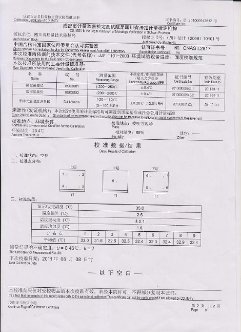 鹽霧腐蝕試驗箱校準(zhǔn)證書模板下載