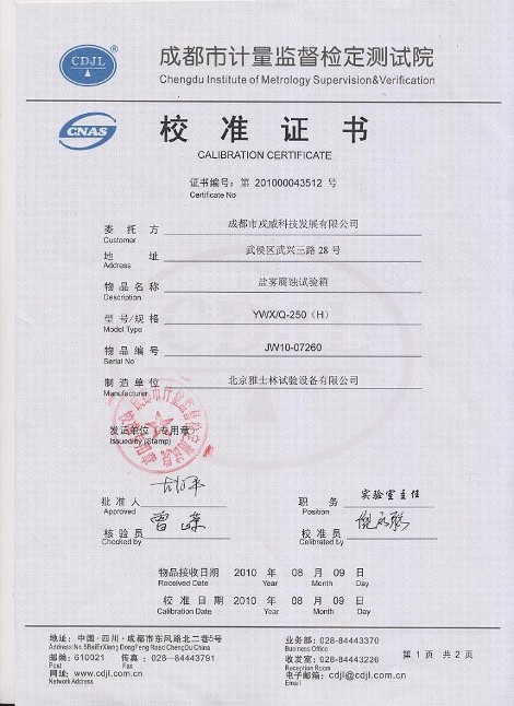 >>鹽霧腐蝕試驗箱校準(zhǔn)證書模板下載