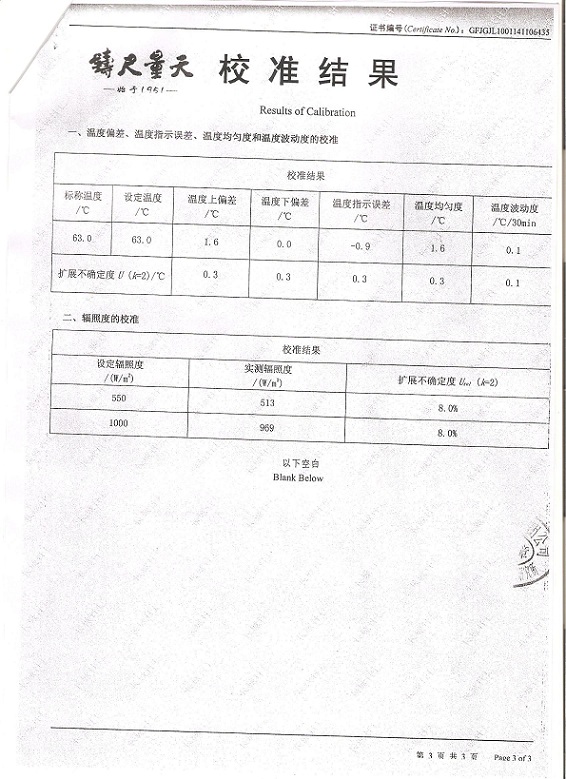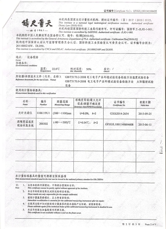 氙燈老化試驗箱校準(zhǔn)證書模板下載—北京長城計量所