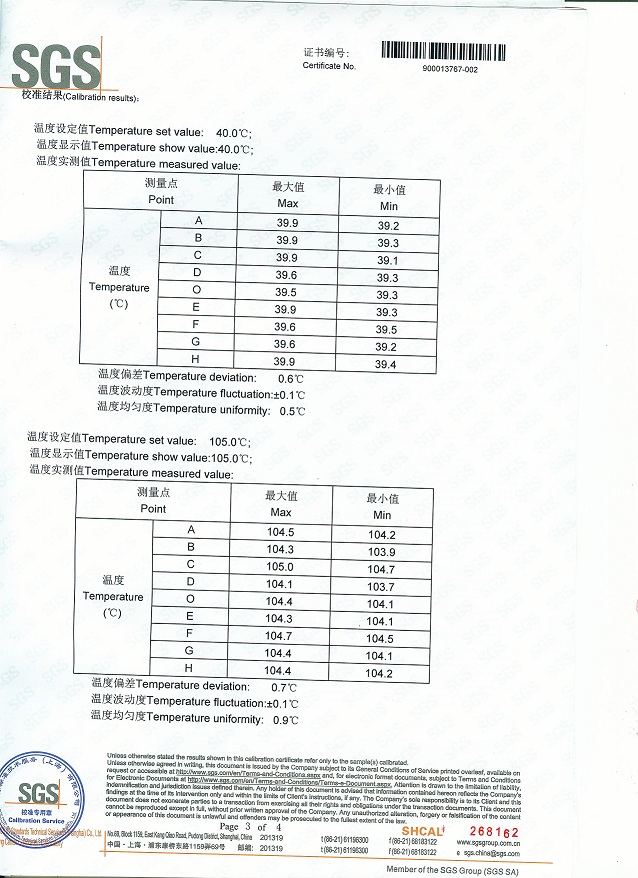 真空干燥箱校準證書模板下載—SGS